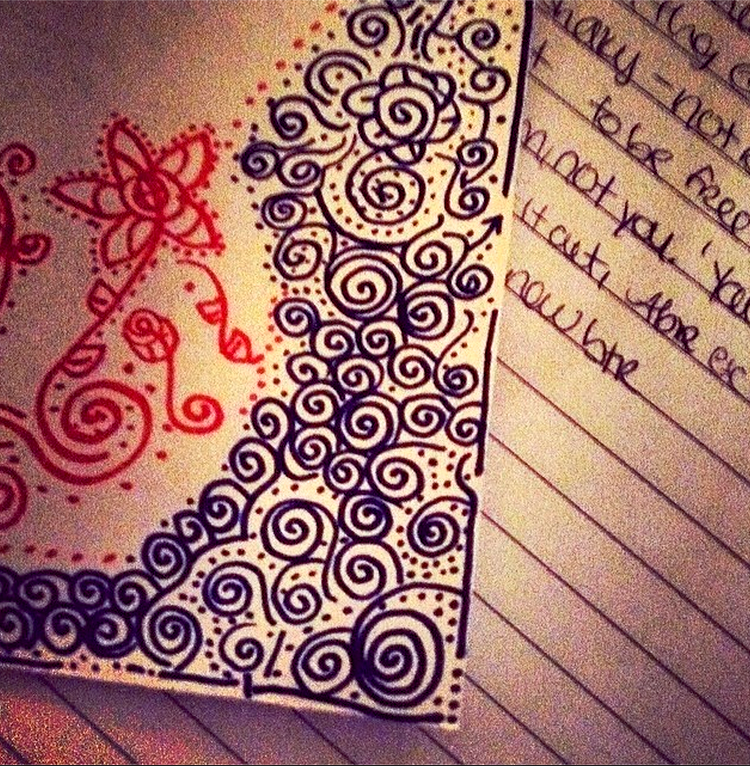 That is pretty funny to me as these are feelings I searched again and again for in philosophy and spiritual books and teachers – really, in every domain of my life – yet somehow I am finding them by allowing myself to simply…doodle. I constantly ask myself questions like: How do I re-connect with my true self and intuition? Live a life that is calm, free, creative, playful and not stressed and like it belongs to somebody else? Joyful and fulfilled? Feminine and passionate?